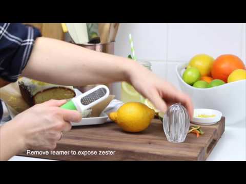 Altamente versátil el 3-en-1 combina un exprimidor un zester y un cuchillo de canal para guirnaldas de torsión.