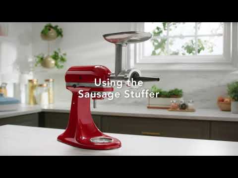 También cuenta con dos tubos del embutidor de salchichas que permiten preparar con facilidad gran variedad de platos ingeniosos y frescos. El empujador de alimentos hará que el empujar todo tipo de alimentos hacia la cuchilla y los discos sea muy fácil, y gracias al cepillo de limpieza podrás quitar los alimentos de los discos de picado y otros componentes de la picadora.